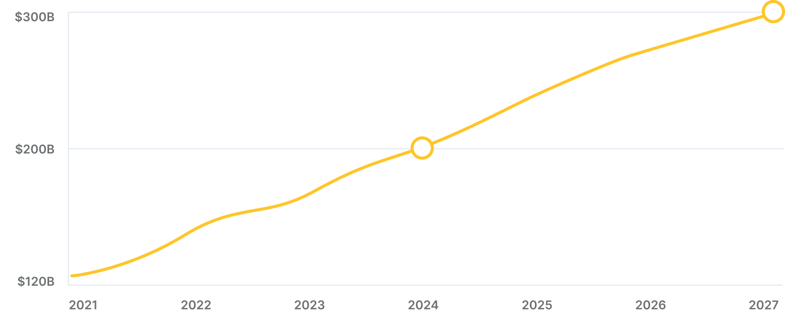 Business of Apps in their “Food Delivery App Revenue and Usage Statistics” article projects that the global market for delivery apps will increase to $120 billion by the end of 2021, reaching $300 billion by 2027.